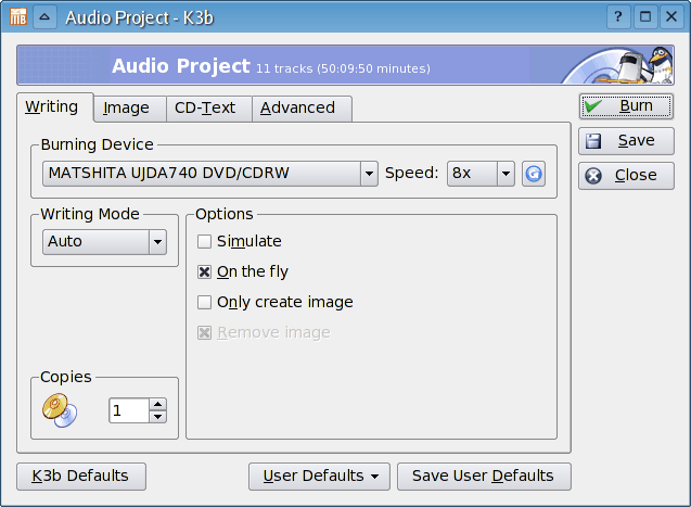 K3b - это утилита для записи CD и DVD под KDE с более, чем удобным пользовательским интерфейсом.